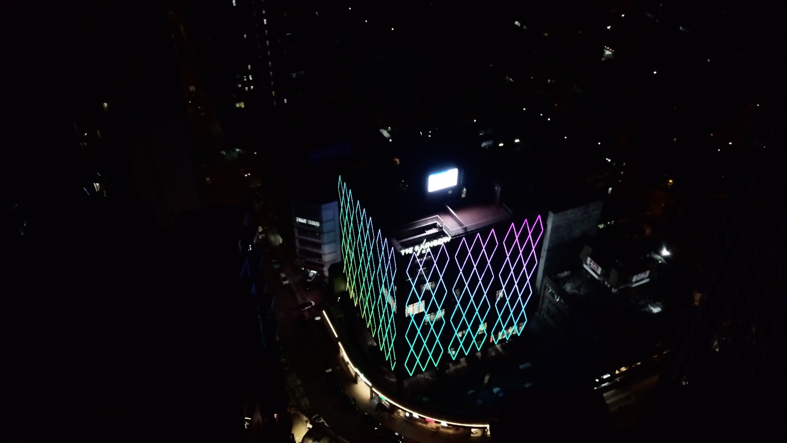 The unique diamond façade of The Rainbow has made it instantly recognizable, setting a new benchmark for commercial development in Yuen Long. The diamond grid acts as the reinforcing framework of the overall architectural composition, and the whole diamond structure sits on a podium base with eye-catching and playful lighting features.
